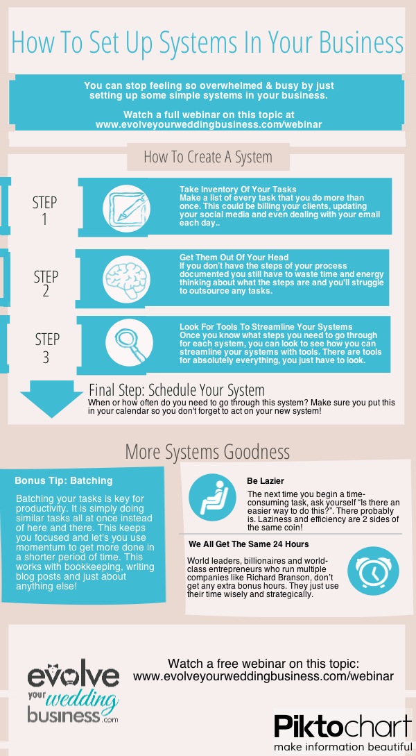 Want more info on setting up systems in your business? Get the replay of the webinar that inspired this infographic here.